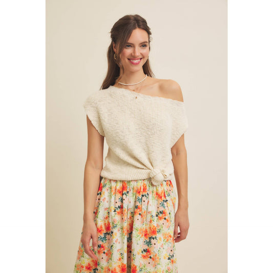 SLUB TEXTURED LIGHTWEIGHT ONE-SHOULDER SWEATER TOP