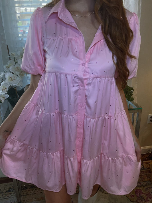 Satin Woven Rhinestone Studded Gem Sparkle Shirt